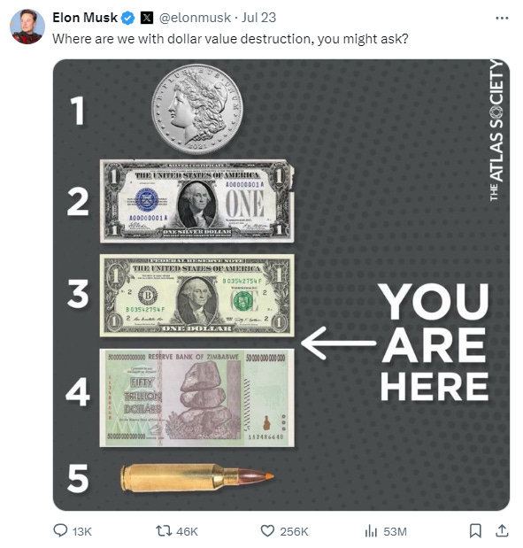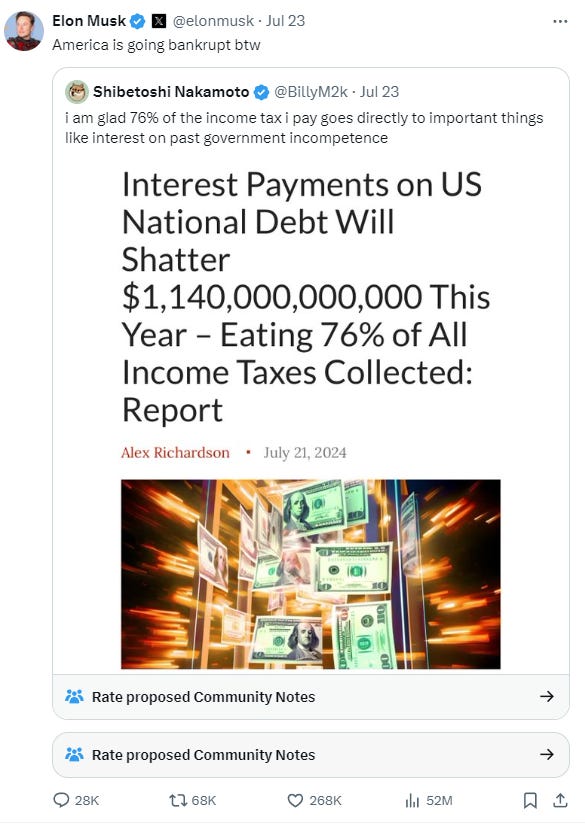 The US is headed for bankruptcy. So declared Elon Musk.