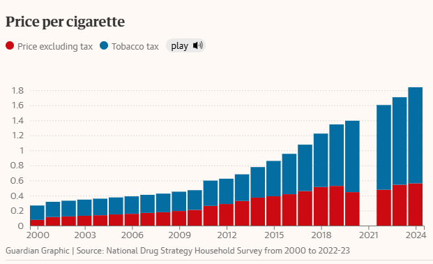 Well, certainly some people have quit. But, The Australian Financial Review notes that “The Tax Office estimates a record 18 per cent of all tobacco for sale in 2022-23 was illicit, and would have earned the federal government an extra $2.7 billion if it was instead sold legally.”